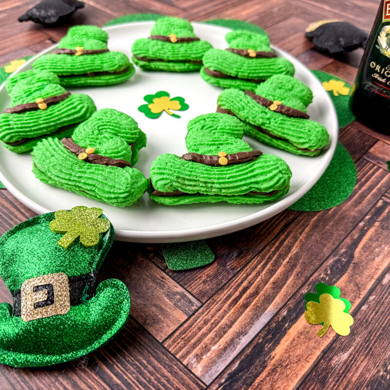 Irish Cream Leprechaun Hat Cookie Sandwiches Family Baking FunFamily Making FunGift IdeasHolidaysNo-Bake DessertsQuick and Easy RecipesRecipesThemed Dessertsvalentines treats Irish Cream Leprechaun Hat Cookie Sandwiches